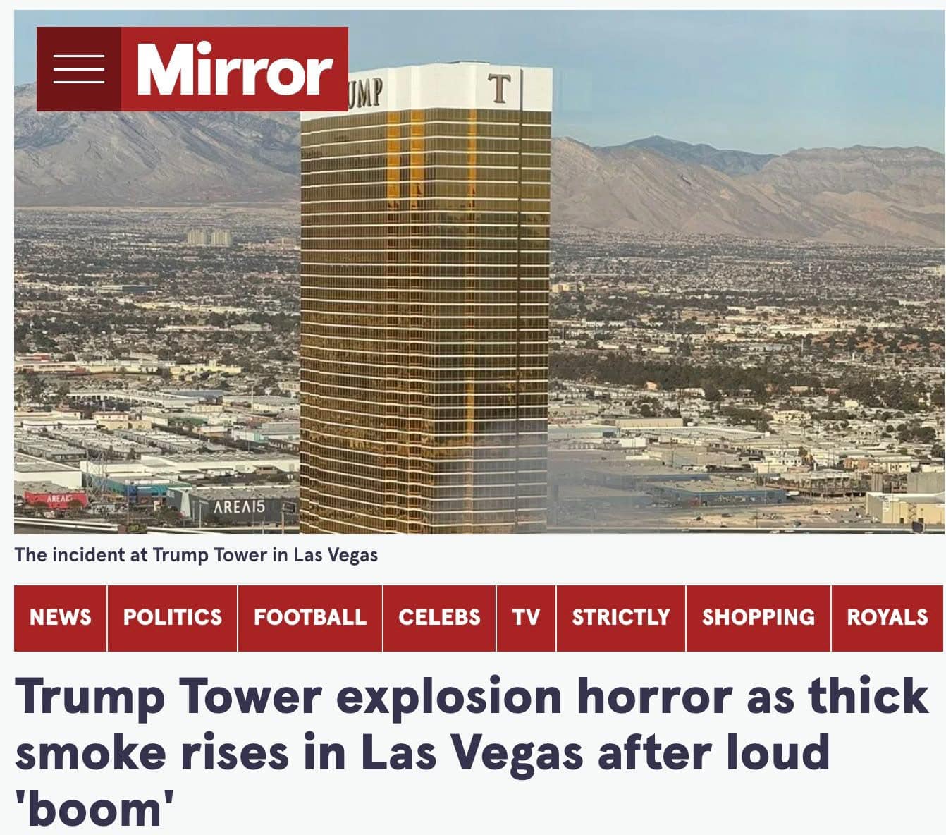 Một tiếng nổ lớn và khói bốc lên gần Trump Tower ở Las Vegas, Nevada trưa ngày đầu năm 2025