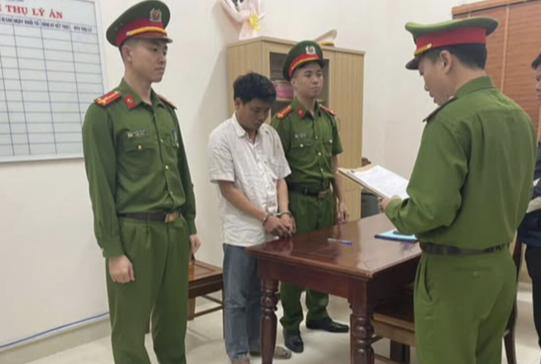 Công an thi hành lệnh bắt khẩn cấp Đặng Thiều Bảo (Ảnh: Công an Quảng Nam).