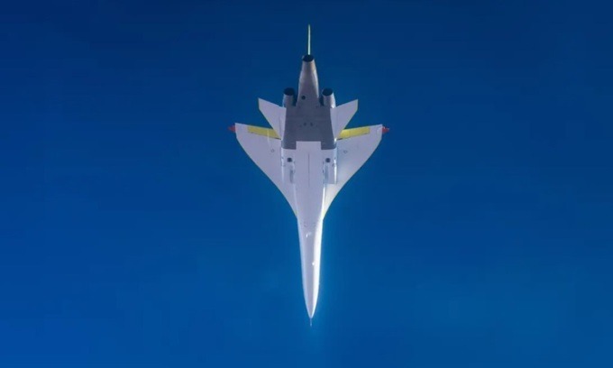 Phần bụng của máy bay XB-1 trong chuyến bay thử thứ 11. Ảnh: Boom Supersonic