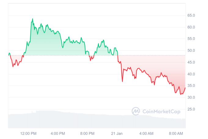 Diễn biến giá memecoin TRUMP trong 24 giờ qua. Ảnh: CoinMarketCap