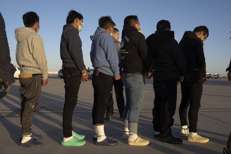Người nhập cư trái phép bị xích, đưa lên vận tải cơ rời Mỹ