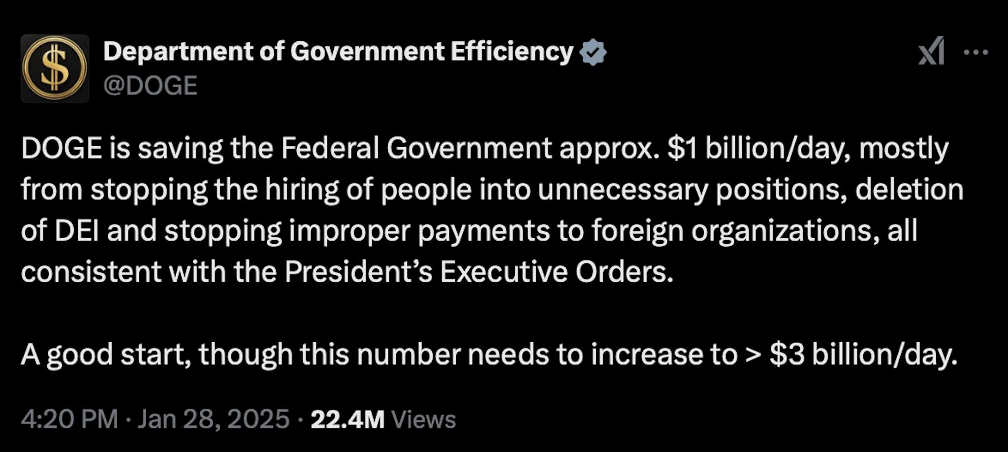 Cục DOGE của Elon Musk đang giúp chính phủ Hoa Kỳ tiết kiệm được 1 tỷ USD mỗi ngày