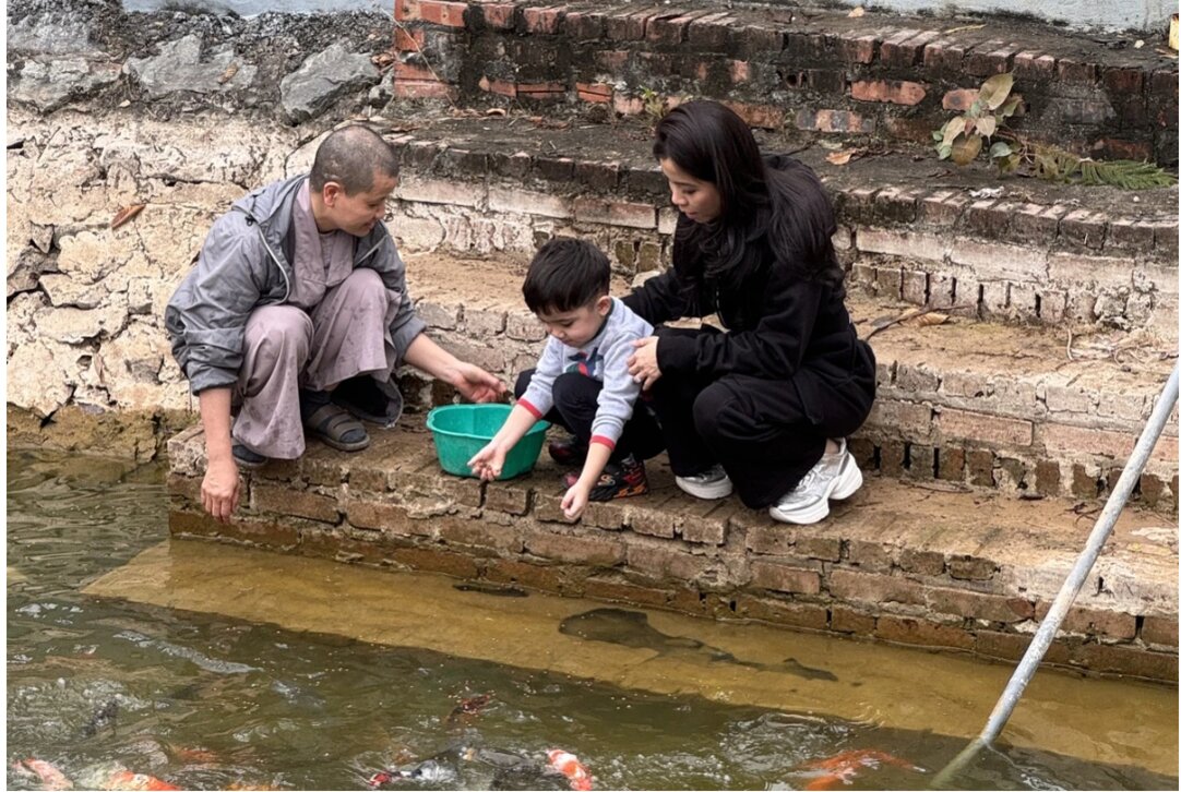 Erickson được mẹ đưa đi thả cá ngày cúng ông Công ông Táo.