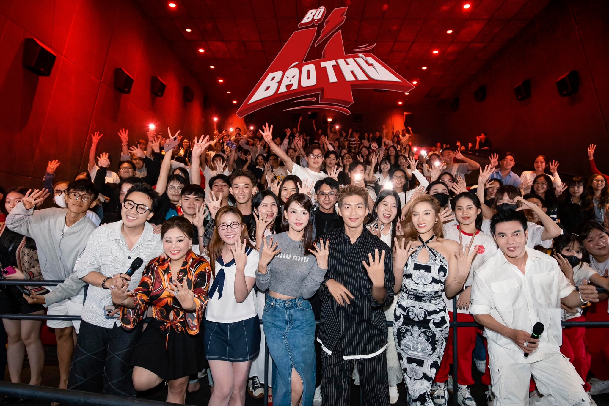 Bộ tứ báo thủ và khán giả tại rạp. Ảnh: NXS