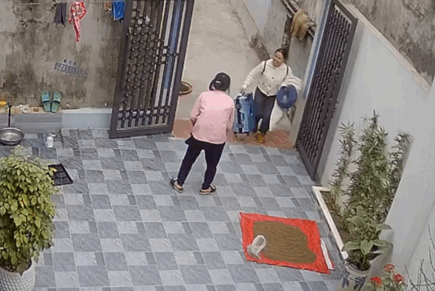 Người phụ nữ bất ngờ khi thấy con dâu kéo vali bước vào cổng nhà. Bà vừa liên tục hô hoán cháu nội ra đón mẹ vừa ôm con dâu vào lòng.