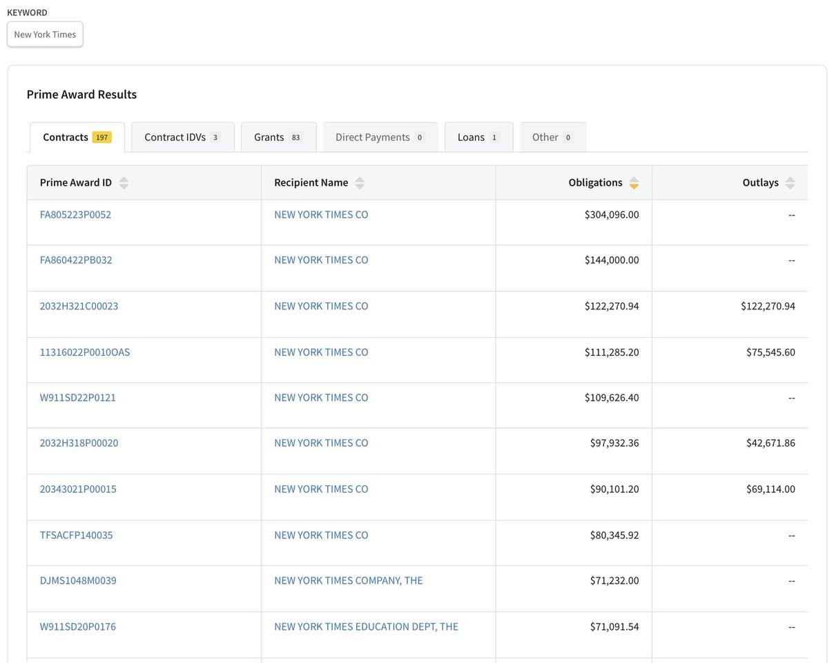 Can someone explain to me why the Department of Health and Human services is paying the New York Times almost $27 million a year in subscription fees? Next up - the NSF (National Science Foundation) with just over $19 million a year.