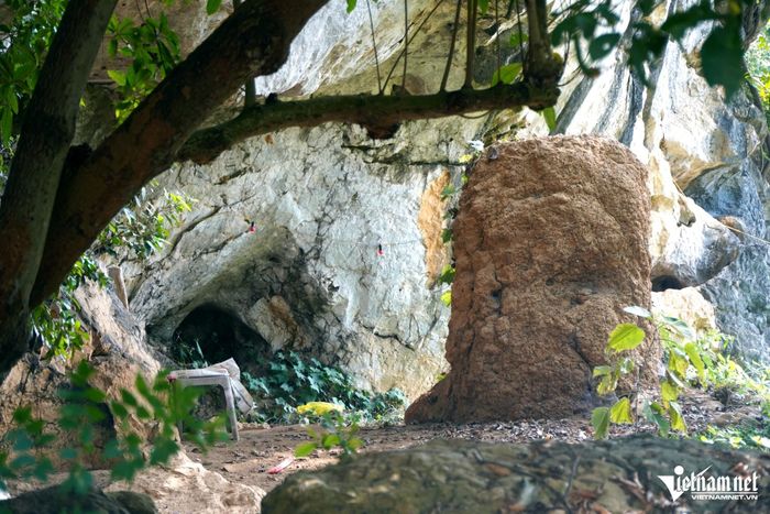 Tổ mối khổng lồ trước cửa hang Mái Đá Điều. Ảnh: Lê Dương
