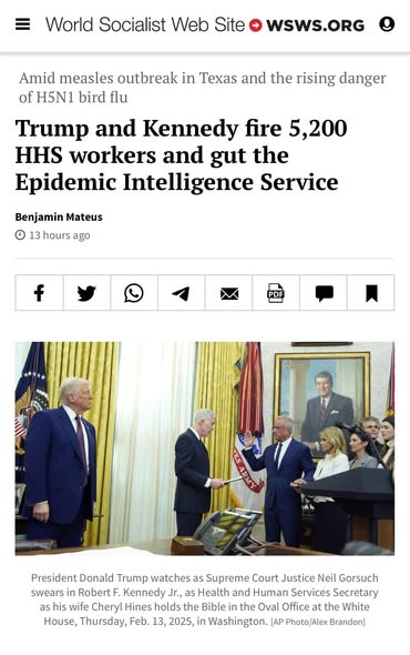 5-Ông Kennedy Jr ký lệnh đuổi 5200 nhân viên bộ y tế. Mấy ngày trước thấy có quý ông nhà báo đăng rần trời: Ông Kennedy này có quyền gì mà đuổi người. Tổng thống đuổi mà còn bị kiện. Hình.