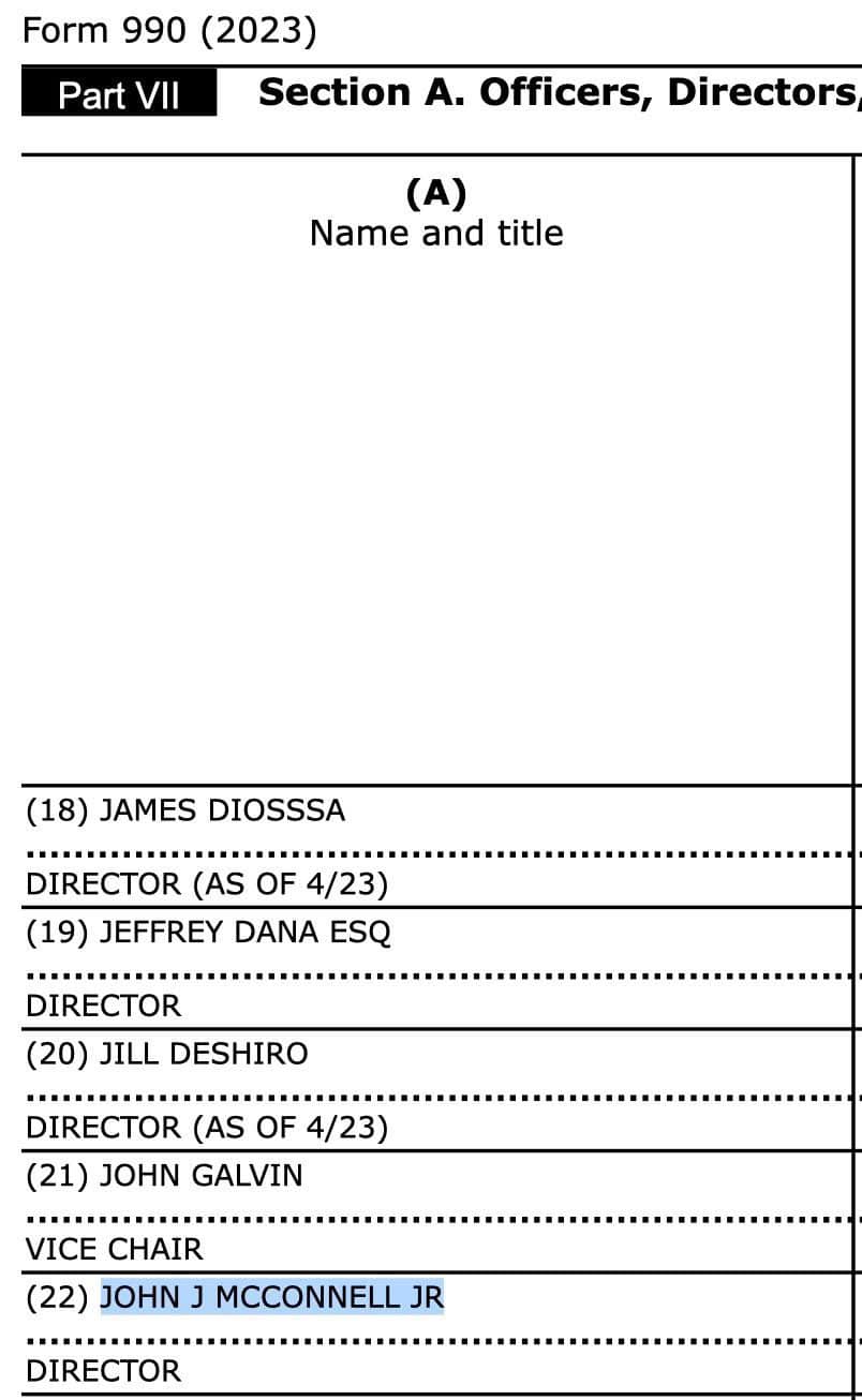 Những khám phá vừa được công bố cho thấy ông Thẩm phán McConnell đang phục vụ trong Hội đồng quản trị của tổ chức phi lợi nhuận NGO, Crossroads Rhode Island và đang giữ chức Chủ tịch Hội đồng quản trị . Tổ chức này đã nhận được tiền tài trợ trong năm 2023 là 18,6 triệu. Ông cũng đã bị tố giác là chi cho 2 thượng nghị sỹ Rhode Island 700 ngàn ,để được tiến cử với Obama. Hình.