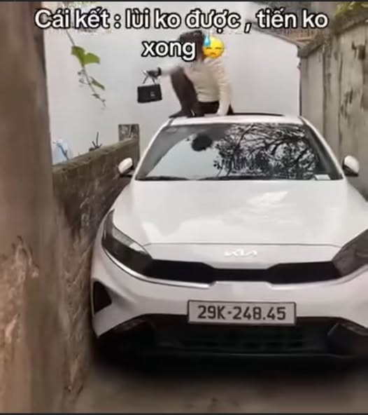Vợ tôi sốt sắng lùi xe… và đúng như dự đoán, lùi không được, tiến cũng không xong. Xe kẹt cứng giữa ngõ, cửa mở không ra vì hai bên là tường.