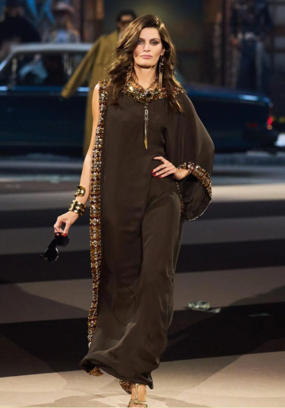 Cụ thể, người mẫu Isabeli Fontana được nhà thiết kế sắp xếp diễn một bộ cánh kaftan lụa mang phong cách truyền thống Ả Rập, nhưng được biến tấu theo hướng gợi cảm, khiêu khích quá đà. Điểm gây tranh cãi nhất chính là chi tiết xẻ dọc toàn thân, để lộ phần cơ thể một cách đầy phản cảm.