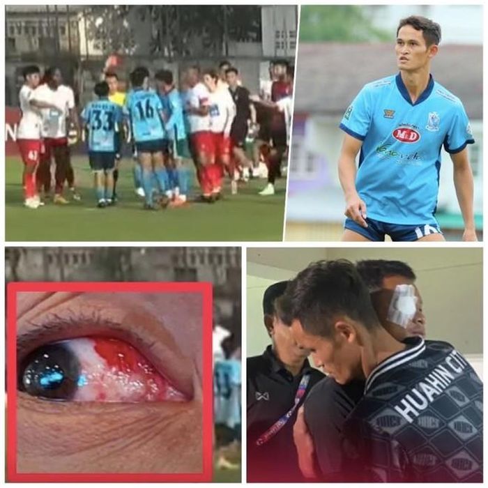 Tức giận vì bị rút thẻ đỏ, hậu vệ 33 tuổi Songkran Puangnoi tiến tới đánh trọng tài, rồi đấm cầu thủ đối phương tới mức phải nhập viện.