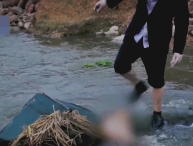 Bộ phận thi thể được phát hiện khi bị mắc lại gần bờ sông. Ảnh: Toutiao