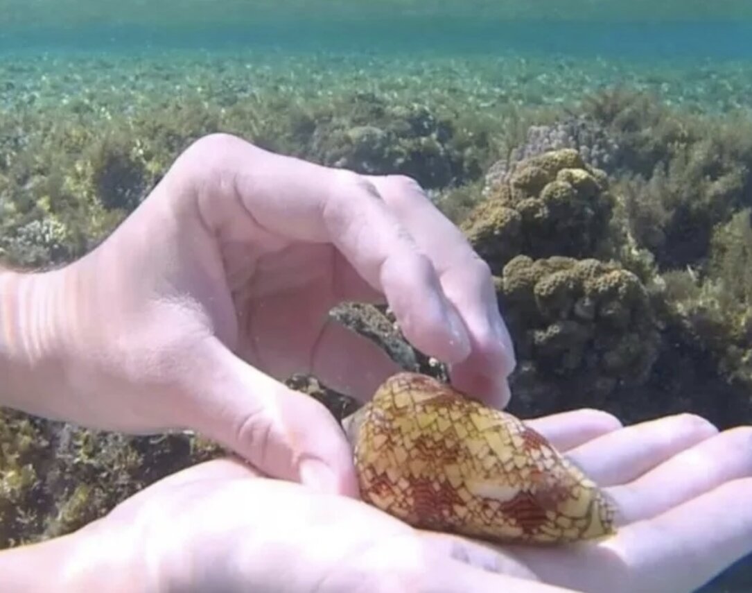 Frank nghĩ rằng mình đã tìm thấy một vỏ sò đẹp ở Biển Đỏ nhưng thực ra anh đã may mắn khi vẫn còn sống sau khi cầm ốc nón. (Ảnh: Reddit)