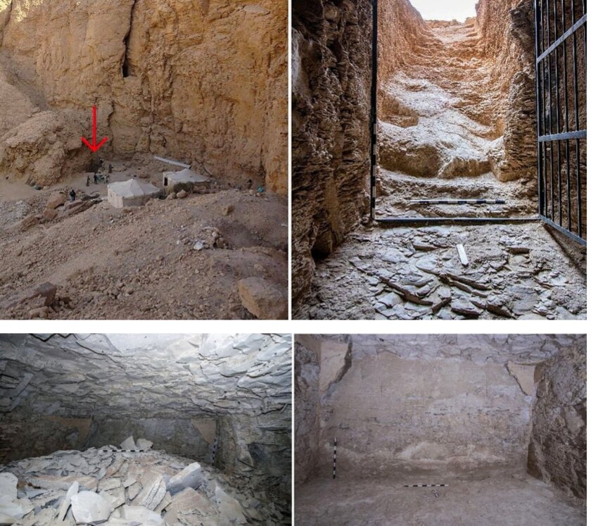Lối vào lăng mộ lần đầu được xác định vào năm 2022 tại khu vực núi Luxor, phía tây Thung lũng các vị Vua. Ban đầu, các nhà khảo cổ cho rằng đây là lăng mộ của một hoàng hậu.