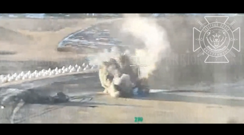 Các xe tham gia cuộc tấn công có ký hiệu chiến thuật hình tam giác màu trắng đặc biệt được lực lượng Ukraine sử dụng tại vùng Kursk của Nga kể từ tháng 8 năm ngoái.