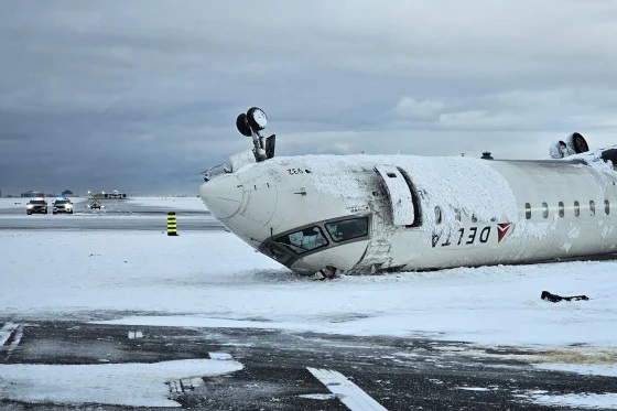 Theo như toàn bộ 76 hành khách và bốn thành viên phi hành đoàn đều sống sót khi chiếc phi cơ Delta đến từ Minneapolis bốc cháy sau khi lật úp và trượt trên đường băng đã được kết quả điều tra phi cơ Delta lật úp ở Toronto của ủy ban An toàn Giao thông Canada, đơn vị đã công bố báo cáo là do tốc độ hạ độ cao.
