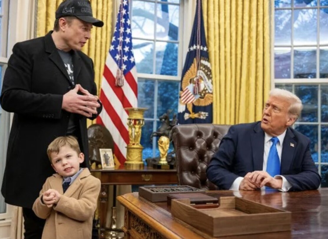 Giám đốc điều hành Tesla và SpaceX Elon Musk cùng con trai có mặt tại Phòng Bầu dục trong Nhà Trắng khi Tổng thống Mỹ Donald Trump ký các sắc lệnh hành pháp vào ngày 11/2/2025. Ảnh: USA Today