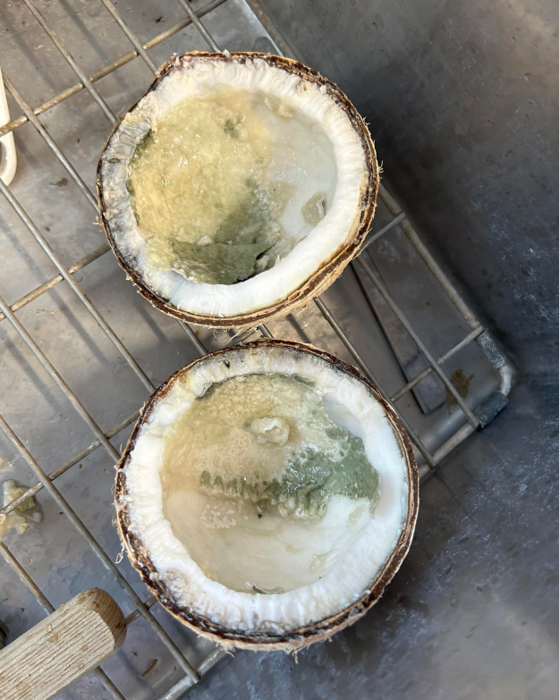 Theo chia sẻ, trước đó, người đàn ông đã mua quả dừa được sơ chế, cắt sẵn 1 góc nhỏ ở phần đầu và để trên bàn bếp suốt 1 tháng rồi mới mang dừa ra uống. Tuy nhiên, ngay khi uống 1 ngụm, ông đã nhận thấy nó có mùi vị lạ. Người đàn ông đã bổ quả dừa ra và phát hiện phần ruột đã bị hư hỏng.