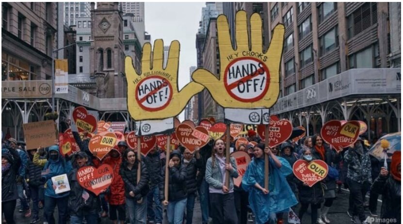 Đây được xem là ngày biểu tình lớn nhất kể từ khi chính quyền ông Trump khởi động chiến dịch cải tổ chính phủ và mở rộng quyền lực.