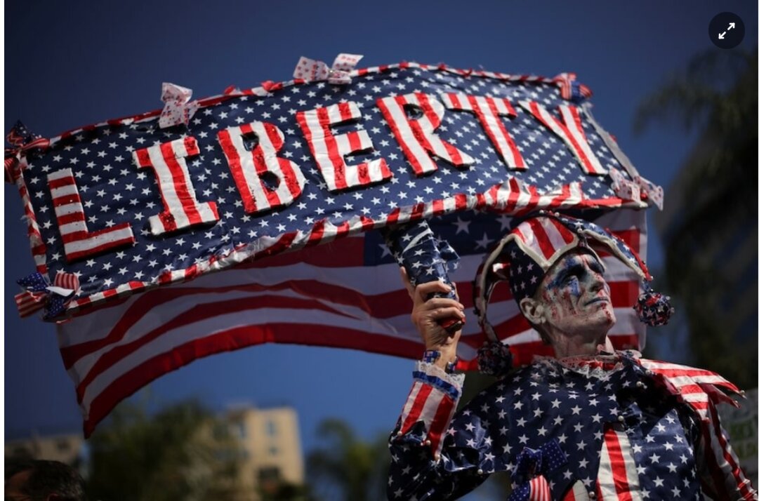 Nhiều người vẫy cờ Mỹ, mang theo những tấm biển phản đối việc cắt giảm Bộ Giáo dục, ủng hộ quyền của người chuyển giới và kêu gọi mọi người bỏ phiếu và bảo vệ Hiến pháp.