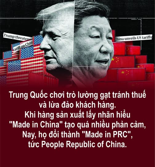 Khi nhãn mác "Made in China" ngày càng tạo ra phản cảm và bị người tiêu dùng toàn cầu – đặc biệt là tại các nước phương Tây – quay lưng, Trung Quốc âm thầm chuyển sang chiến lược mới: dán nhãn “Made in PRC” (People’s Republic of China). Đây là một chiêu thức đánh tráo khái niệm, nhằm né tránh sự tẩy chay, nhưng bản chất vẫn là hàng Trung Quốc.