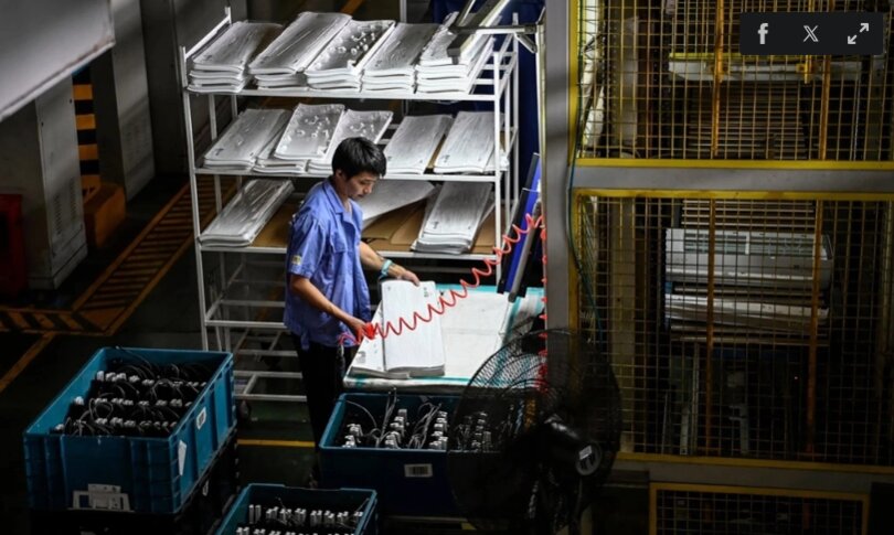Công nhân làm việc trong một nhà máy sản xuất điều hòa ở Quảng Châu hồi năm ngoái. Ảnh: AFP
