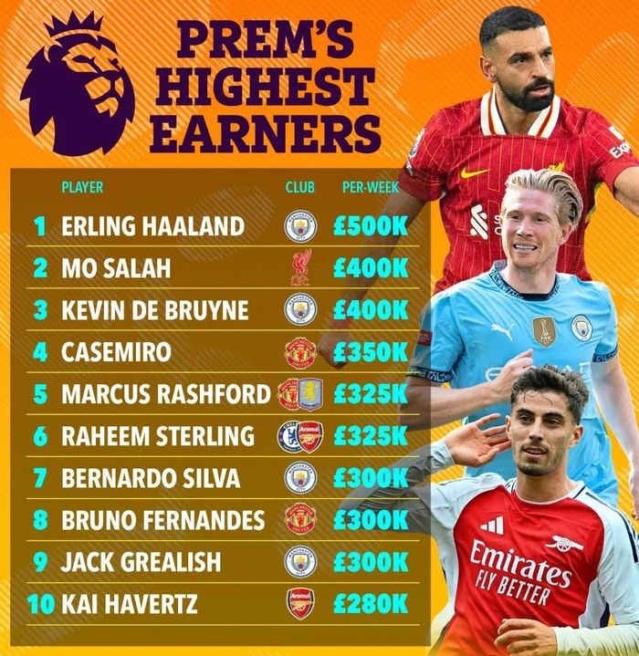 Những cầu thủ hưởng lương cao nhất Premier League hiện nay.
