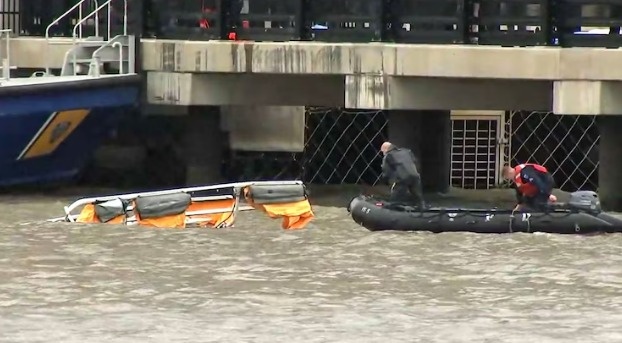 Hiện trường vụ tai nạn trực thăng trên sông Hudson vào ngày 10/4. Ảnh: WABC.