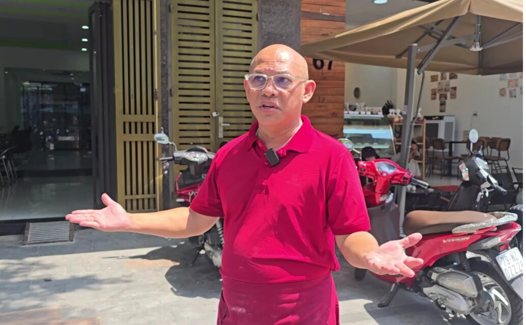Color Man cho biết vừa đến Nha Trang mở cửa hàng bánh mì được 1 tháng. Ảnh: Chụp từ clip