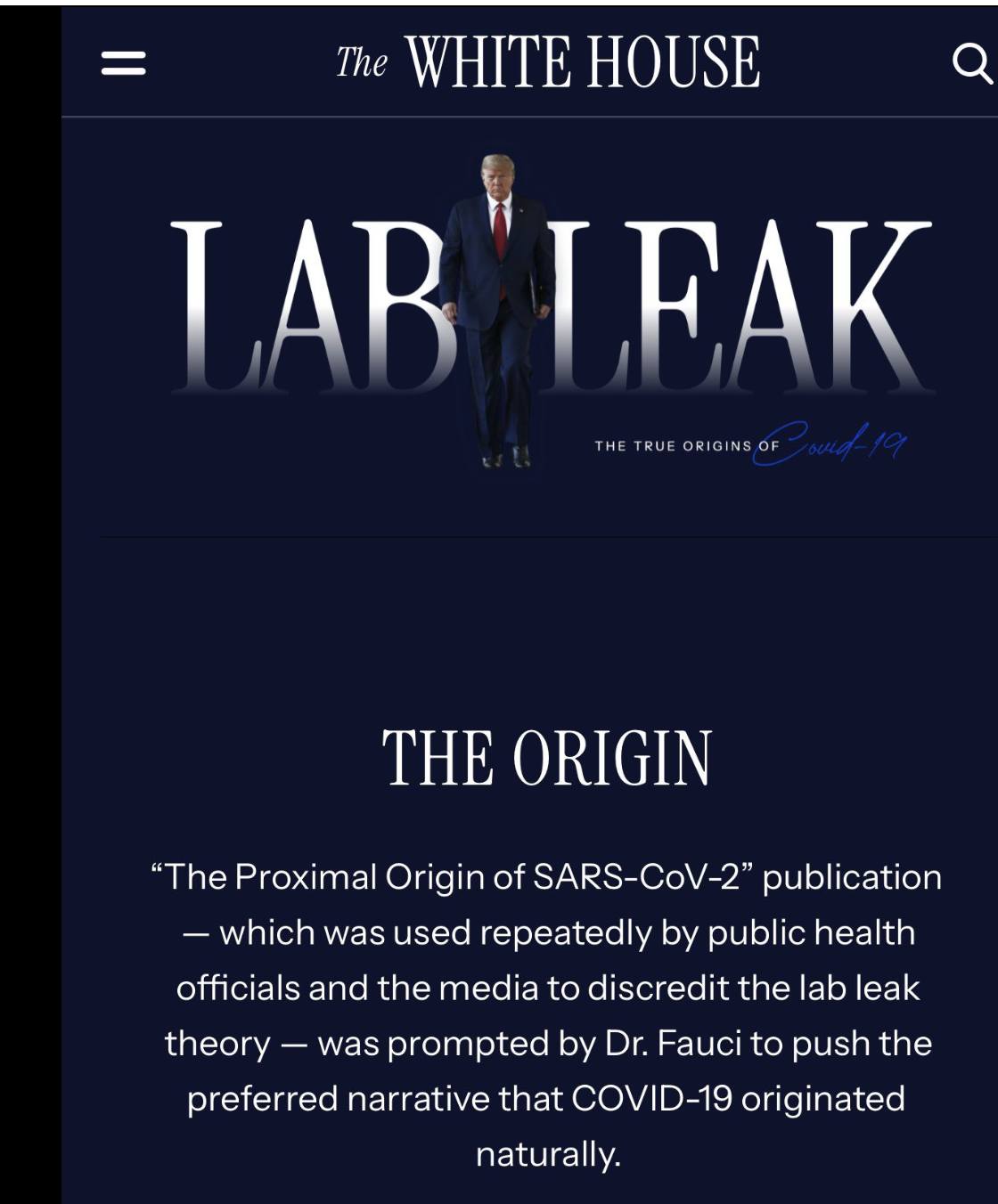 Trang web Toà Bạch Ốc vừa chính thức công bố: COVID được bắt nguồn từ một vụ rò rỉ trong phòng thí nghiệm của Trung Quốc.
