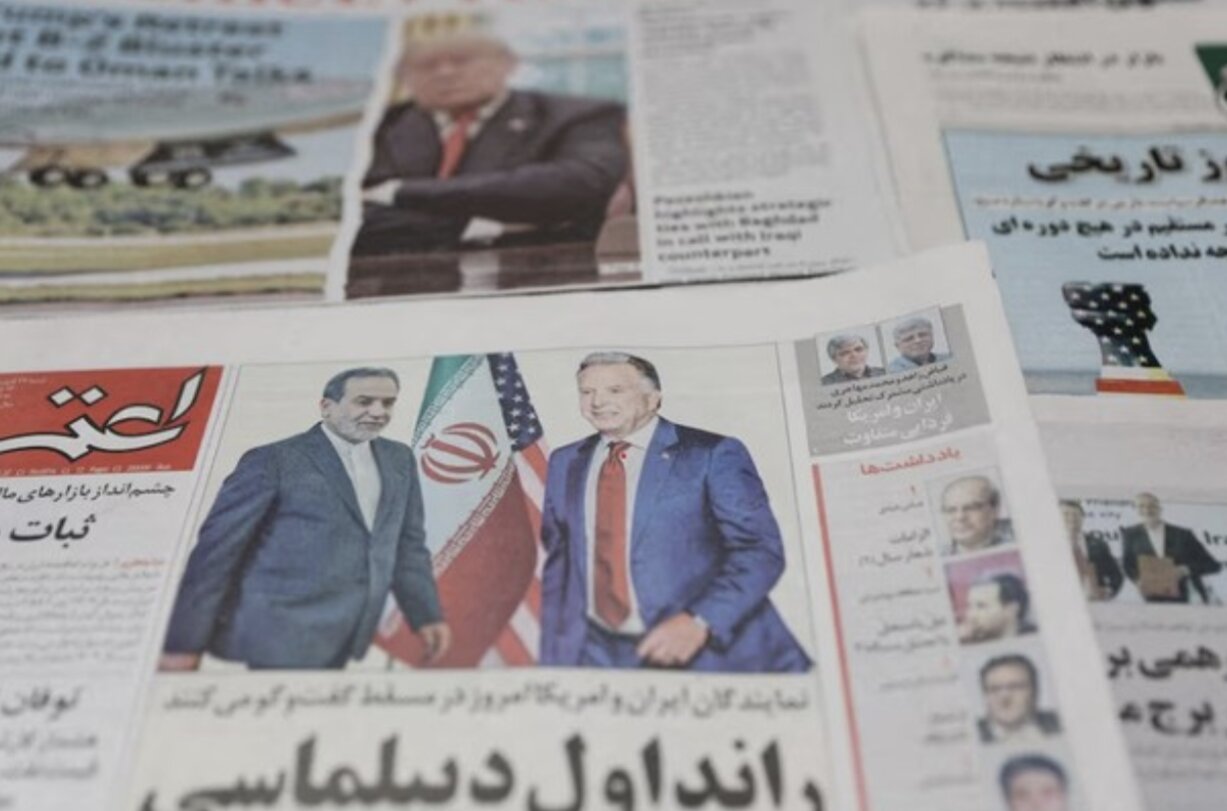 Một tờ báo Iran đăng ảnh Ngoại trưởng Abbas Araqchi và đặc phái viên Trung Đông của Mỹ Steve Witkoff ngày 12/4. (Ảnh: Reuters)