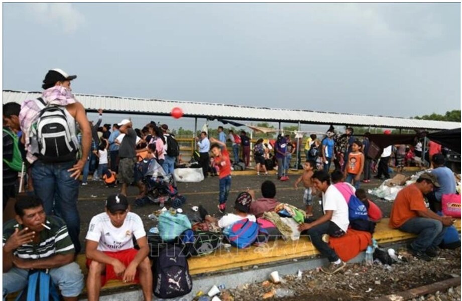 Người di cư Honduras tại khu vực Ciudad Tecun Uman ở biên giới Guatemala-Mexico, trong hành trình tới Mỹ ngày 21/10/2018. Ảnh: AFP/ TTXVN