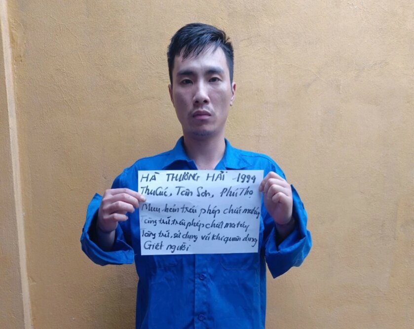 Đối tượng Hà Thương Hải (SN 1994, trú tại xã Thu Cúc, huyện Tân Sơn, tỉnh Phú Thọ) bị khởi tố về các tội: Giết người; Mua bán trái phép chất ma túy; Tàng trữ trái phép chất ma túy; Tổ chức sử dụng trái phép chất ma túy; Tàng trữ, sử dụng trái phép vũ khí quân dụng.