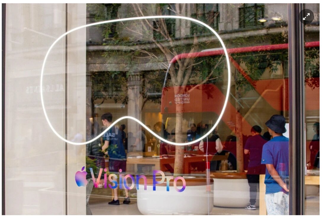 Logo quảng cáo Vision Pro trước cửa hàng Apple. Ảnh: Bloomberg.