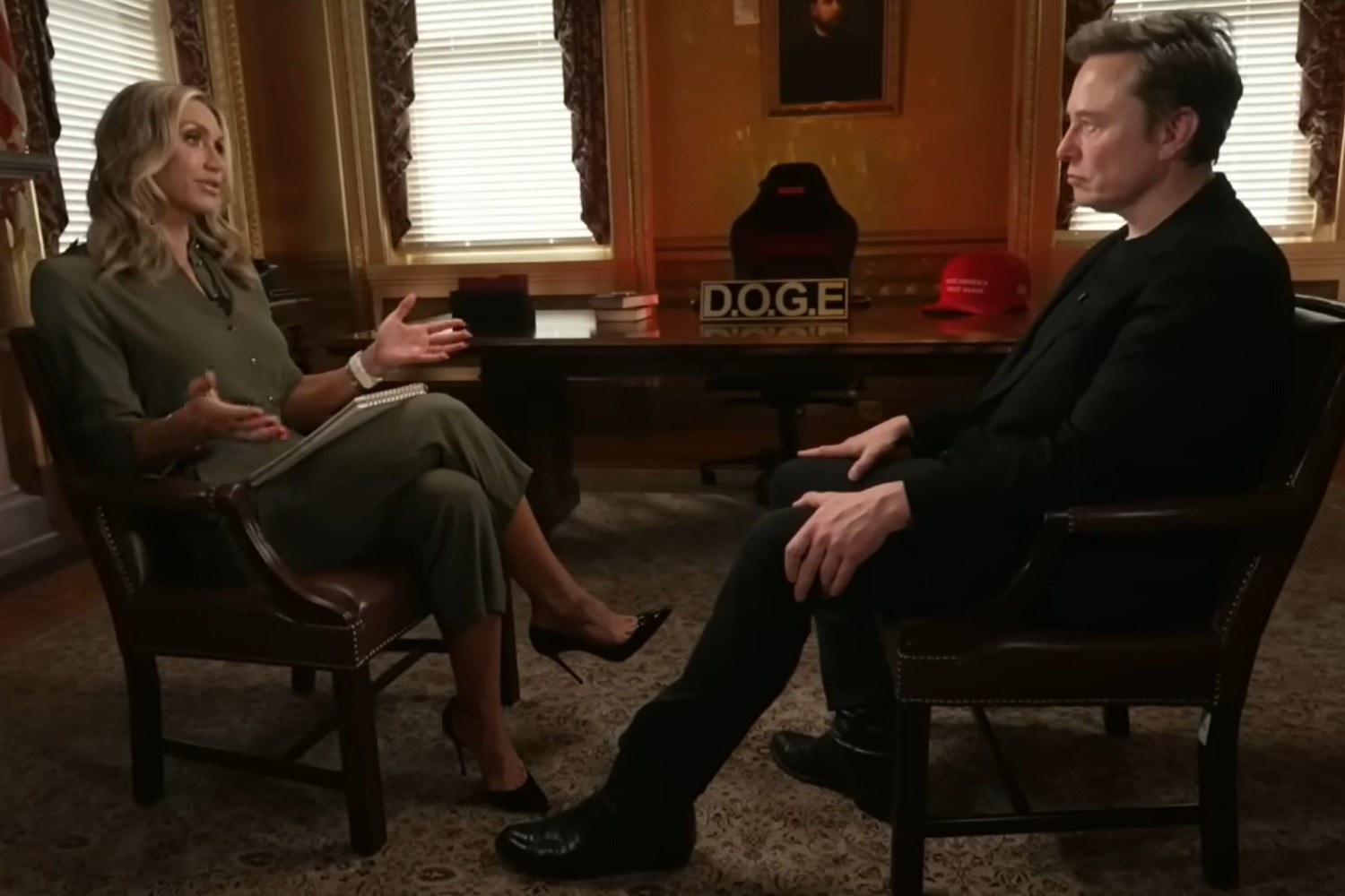 Tỷ phú Musk (phải) khi tham gia chương trình “My View with Lara Trump” phát sóng trên kênh Fox News . Ảnh: Fox News