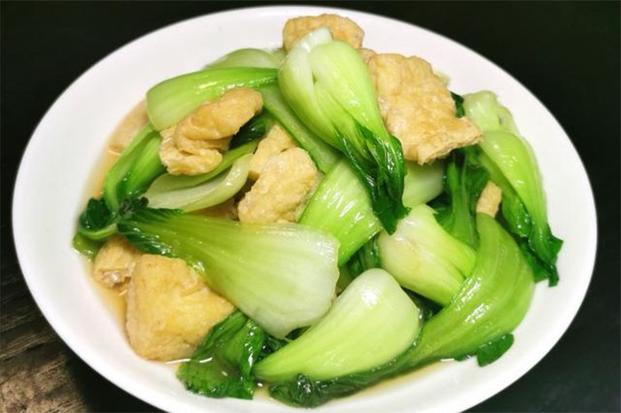Đậu phụ xào cải chíp là món ăn bổ gan thận tốt. (Ảnh: Xiachufang)
