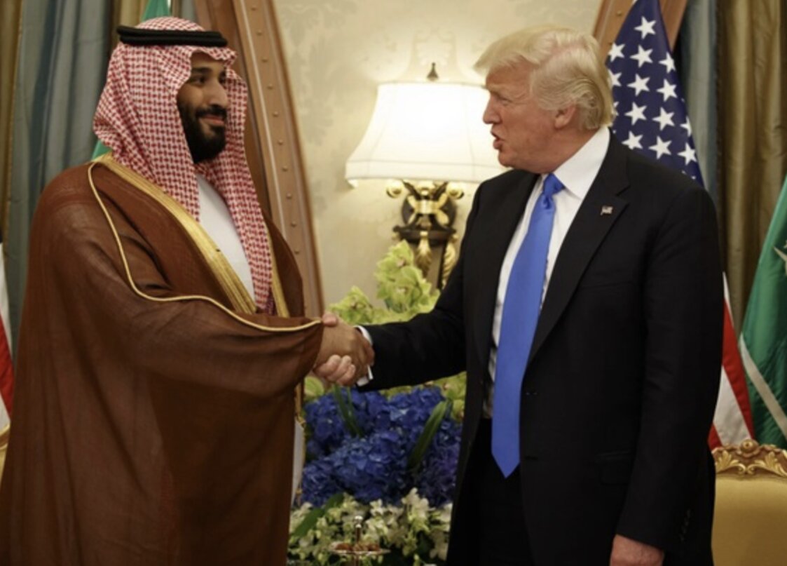 Tổng thống Mỹ Donald Trump (phải) bắt tay Phó Thái tử kiêm Bộ trưởng Bộ Quốc phòng Ả Rập Saudi Mohammed bin Salman trong một cuộc họp song phương tại Riyadh ngày 20-5-2017, trong khuôn khổ chuyến thăm Trung Đông vào nhiệm kỳ đầu tiên của ông - Ảnh: AP