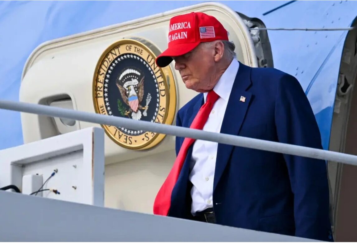 Tổng thống Mỹ Donald Trump bước xuống từ chuyên cơ Không Lực Một. Ảnh: Getty