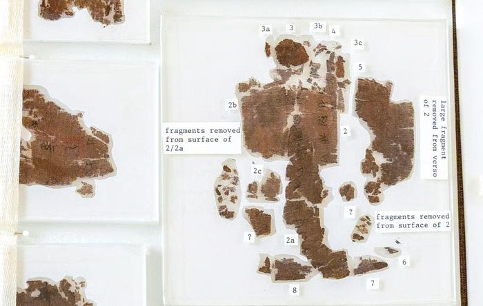 Các mảnh của sách lụa cổ trưng bày trong lễ bàn giao ở Đại sứ quán Trung Quốc tại Washington. Ảnh: Tân Hoa Xã.