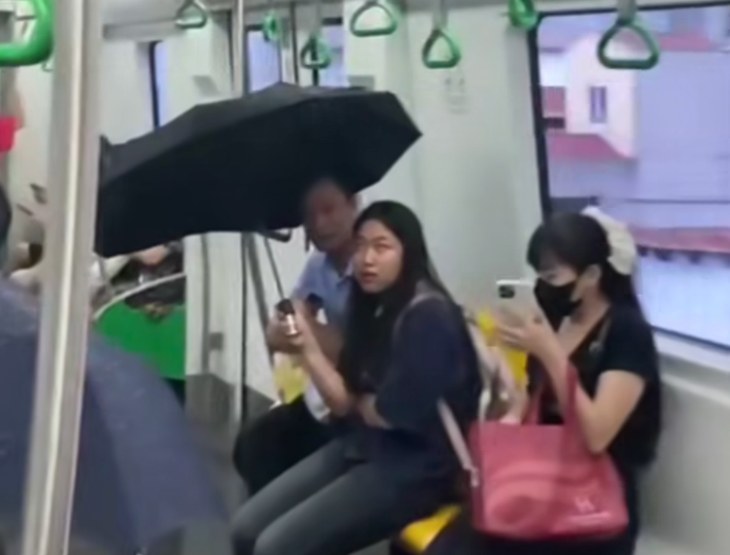 Nước từ phía trên trần toa tàu liên tục đổ xuống khiến hành khách phải bật ô để che, một số hành khách khác phải di chuyển ra khỏi khu vực đột nước, Tuổi Trẻ Online dẫn phản ánh của người dân.