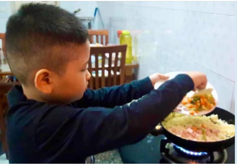 Tôi đi làm về sớm hơn chồng nên chứng kiến cảnh con trai vào bếp nấu ăn .Nhìn mâm cơm tuy đơn giản nhưng ấm áp ,tôi không khỏi cảm động .