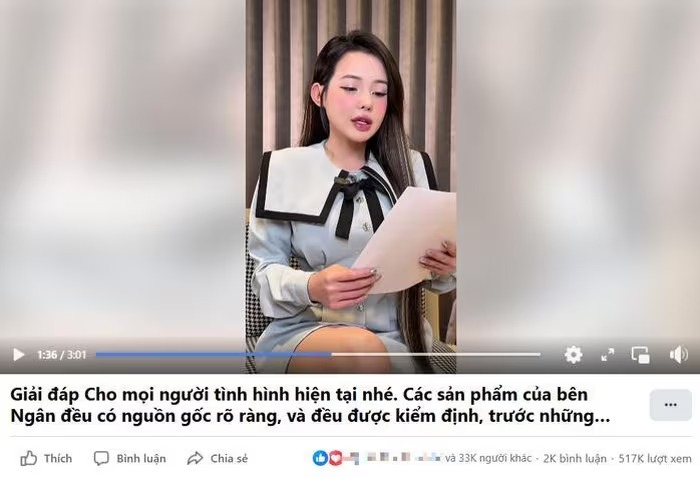 Tối 21-5, trên fanpage Facebook 2,2 triệu người theo dõi, Ngân 98 bất ngờ đăng tải clip để nói về những lùm xùm vừa qua liên quan đến sản phẩm cô đang bán không đảm bảo chất lượng và cho biết văn bản trên tay cô là công văn kiến nghị gửi đến Sở An toàn thực phẩm TP HCM.
