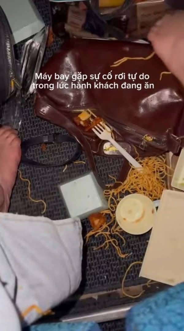 Hình ảnh được hành khách ghi lại và lan truyền trên mạng xã hội cho thấy khoang máy bay trong tình trạng hỗn loạn, thức ăn rơi vãi, khăn giấy, ly nhựa lăn dưới sàn, một số hành khách ôm thành ghế…