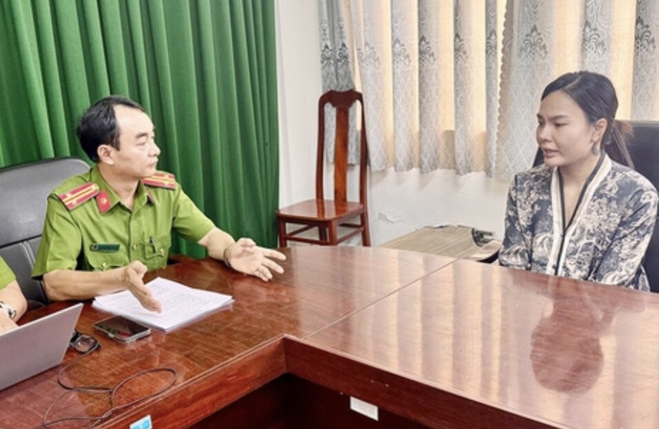 Đối tượng Nguyễn Thị Kim Hoa khai nhận tại Cơ quan Công an. Ảnh: CA An Giang