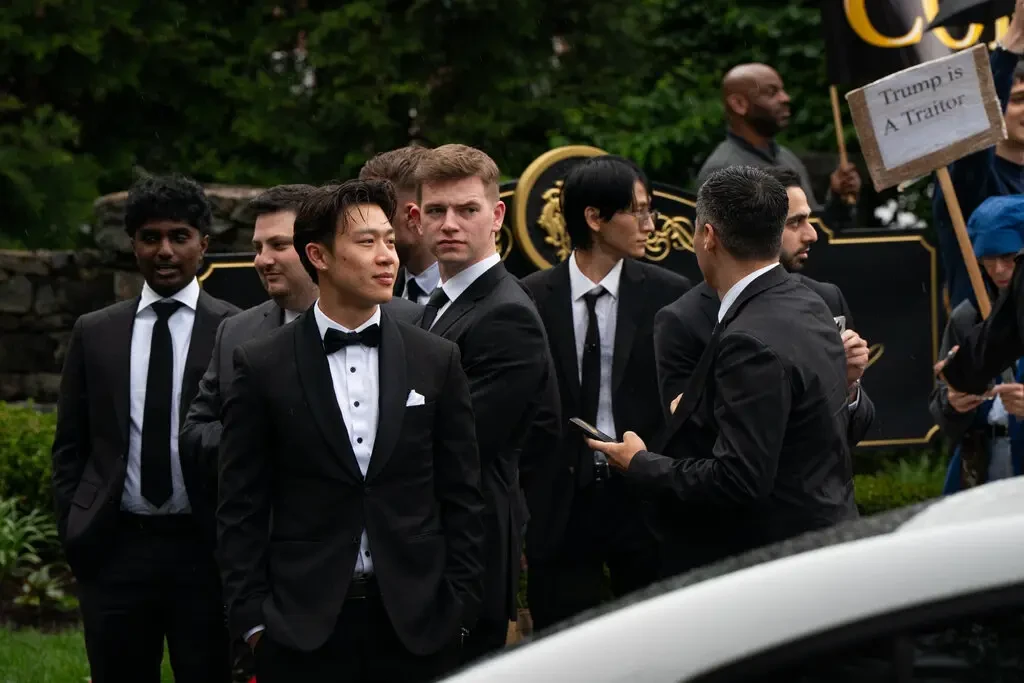 Bữa tiệc của ông Trump đã không diễn ra suôn sẻ. Bên ngoài Câu lạc bộ Golf, hàng chục người biểu tình đã tập trung, hô vang những khẩu hiệu phản đối mạnh mẽ. Khi các khách mời tiến vào, họ bị chào đón bằng tiếng hô "đáng xấu hổ" không ngớt.