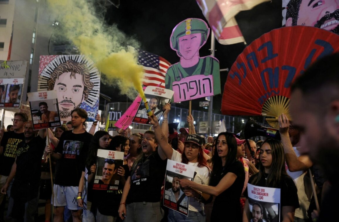 Tại Tel Aviv, trung tâm của chiến dịch biểu tình phản đối Chính phủ Israel về cách thức điều hành cuộc chiến ở dải Gaza trong hơn một năm qua, những người biểu tình tập trung tại quảng trường Habima và tuyến phố Begin phía trước trụ sở Lực lượng Phòng vệ Israel (IDF). Theo truyền thông Israel, mỗi địa điểm biểu tình có ít nhất hơn 1.000 người tham gia, trong đó có cả các cựu con tin và thân nhân các con tin còn bị giam giữ ở dải Gaza.