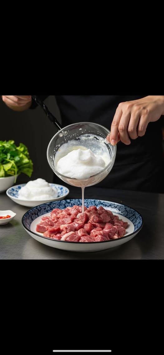 Thật ra, đầu bếp chuyên nghiệp có “chiêu”. Trong ẩm thực Hoa, họ gọi kỹ thuật này là “水绒” (shuǐ róng) – tạm dịch là “con dấu nước”. Nghe hơi lạ tai, nhưng đây chính là bí kíp giúp thịt mềm mọng mà không cần hầm hay om lâu. Chỉ 30 giây thôi là thấy khác biệt ngay.