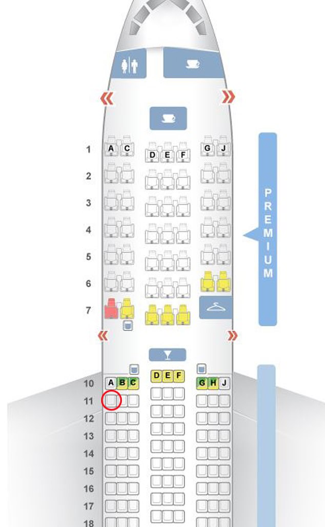Vị trế ghế ngồi 11A. Ảnh: Daily Mail