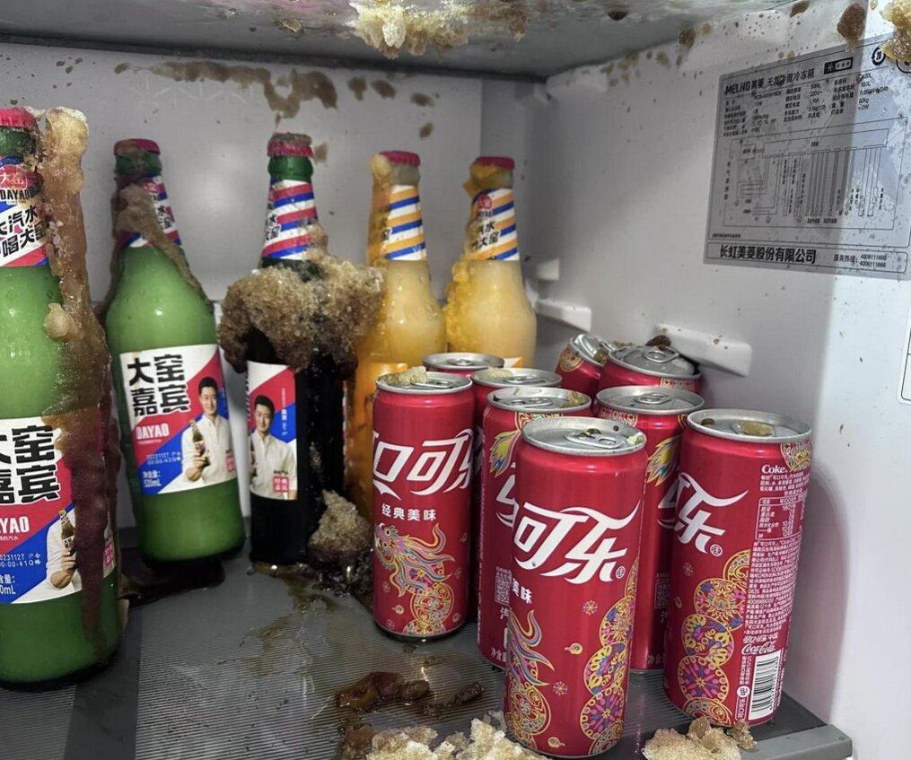 Vào ngày nóng, mở lon nước ngọt mát lạnh, nghe tiếng "xì" sảng khoái là niềm vui nhỏ của nhiều người. Để có trải nghiệm này, không ít gia đình cho lon nước ngọt như Coca-Cola, Pepsi, 7Up... vào ngăn đông để làm lạnh nhanh. Nhưng nếu quên lấy ra, lon có thể gặp rắc rối. Nhiệt độ ngăn đông làm nước ngọt đóng băng, khí CO2 bên trong giãn nở, tạo áp suất lớn. Áp suất này có thể làm lon nhôm vỡ, khiến nước ngọt bắn tung tóe, làm bẩn tủ lạnh.